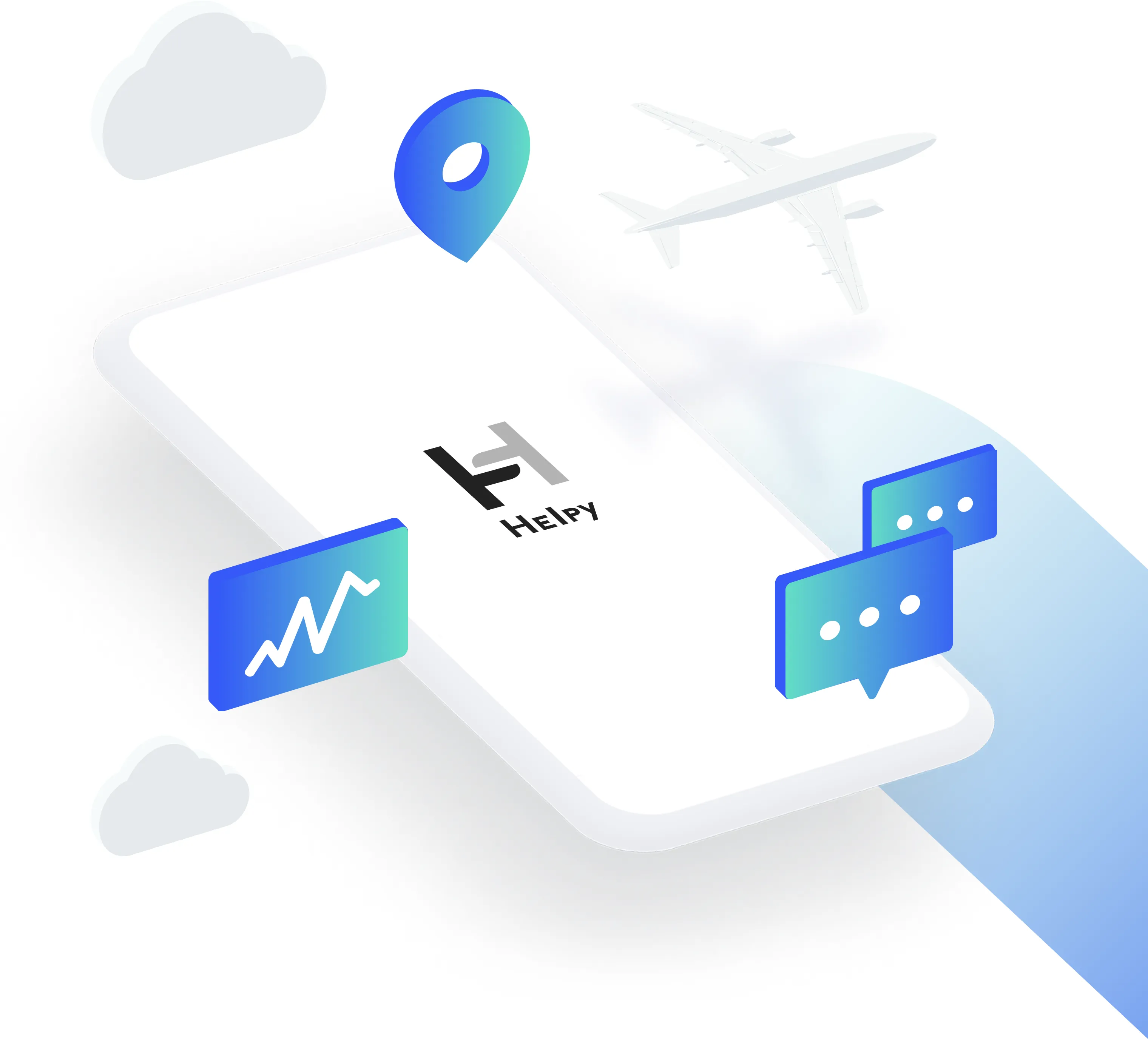 Helpy(ヘルピー)は、お客様自身のスマートフォンやタブレットで利用できる、多言語対応のAIチャット&施設ガイドサービスです。